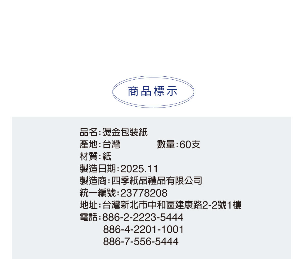 § 規格:53x78cm,每箱60支。