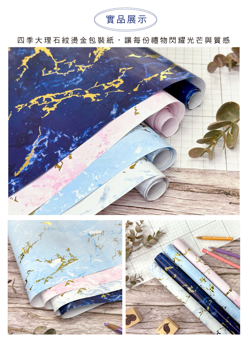 四季紙品禮品 燙金包裝紙 60入批發 大理石紋 BZ3020-07