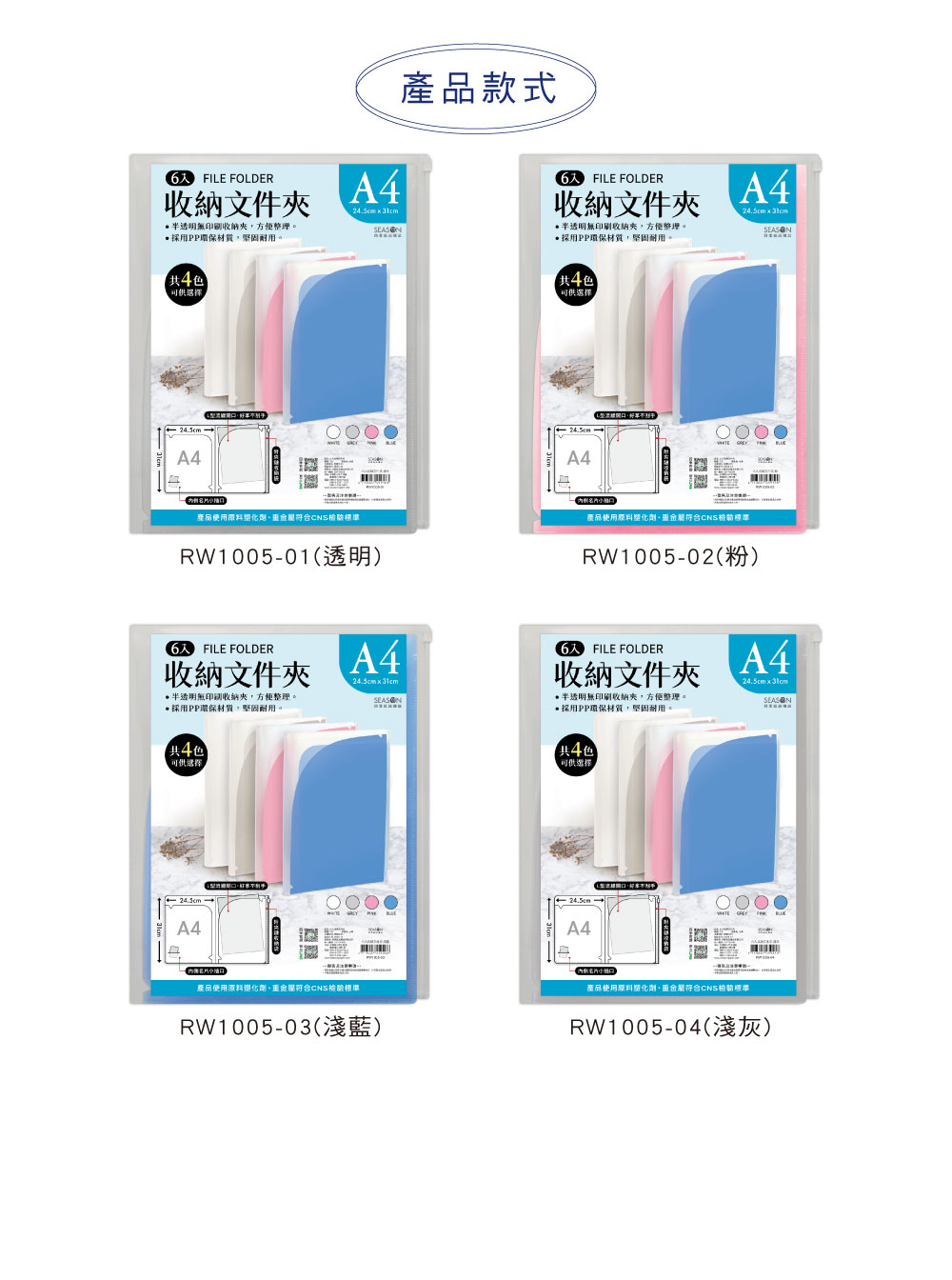 規格 -01透明-02粉-03淺藍-04淺灰