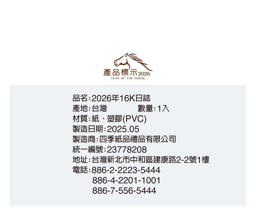 四季紙品禮品 2026年16K日誌 一天一頁 工商日誌 效率手冊 手帳 YD2616